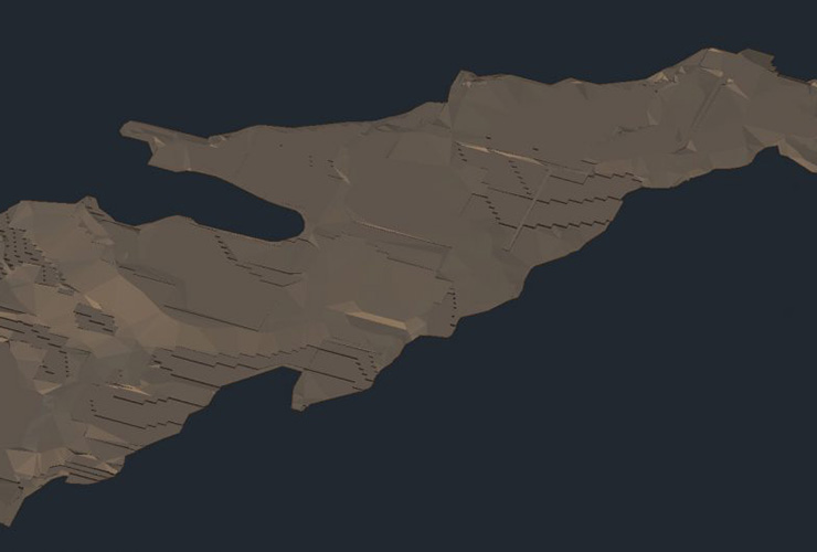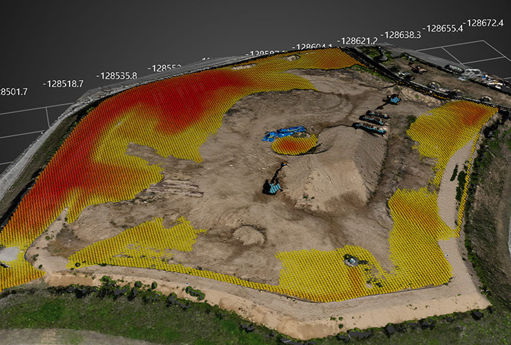 UAVで毎年計測することで、経年の土量変化を3次元で計算可能。最大収容計画の3Dモデルを作成することにより、収容可能土量の変化も3次元で記録し、毎年の報告書に活用。